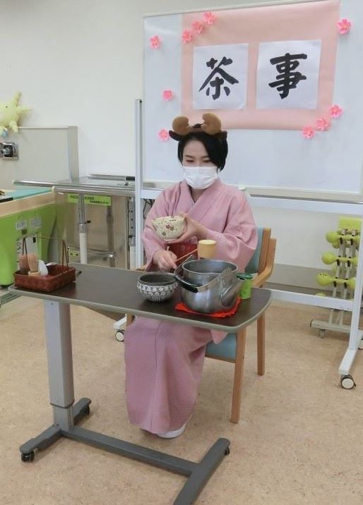4月は職員がお茶の先生となり、患者様と一緒にお茶を楽しまれました。