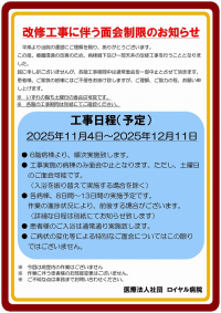 【ロイヤル病院】改修工事に伴う面会制限のお知らせ